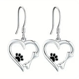 Yaritza™ – Silver Paw & Heart Drop Earrings